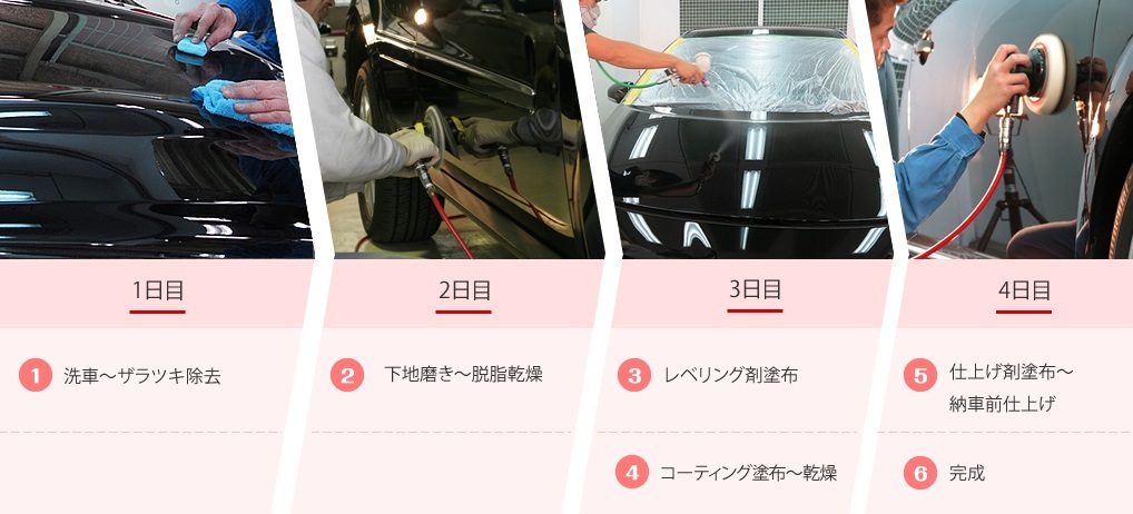 クォーツガラスコーティングの施工工程