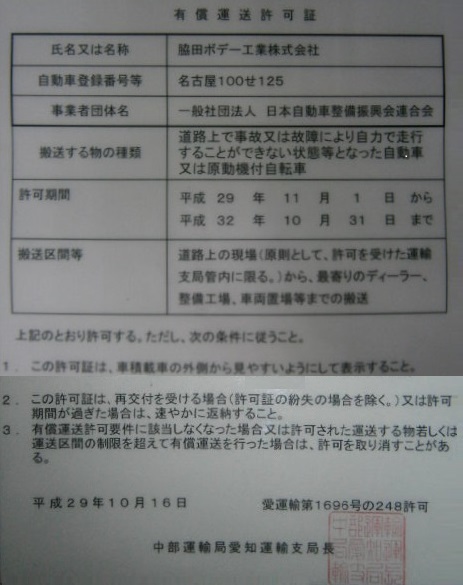 有償運送許可証
