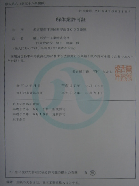 脇田ボデー : 愛知県名古屋市守山区新守山3003 電話052-793-8131